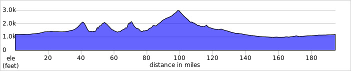 Terrain: The route follows the Salt and Agua Fria River Valleys as it winds between several mountain ranges. While this route is relatively flat by Arizona brevet standards, with 5600 feet of total climbing, it differs from flat routes in other parts of the country in that it offers continually changing views of mountains in all directions along the entire course.